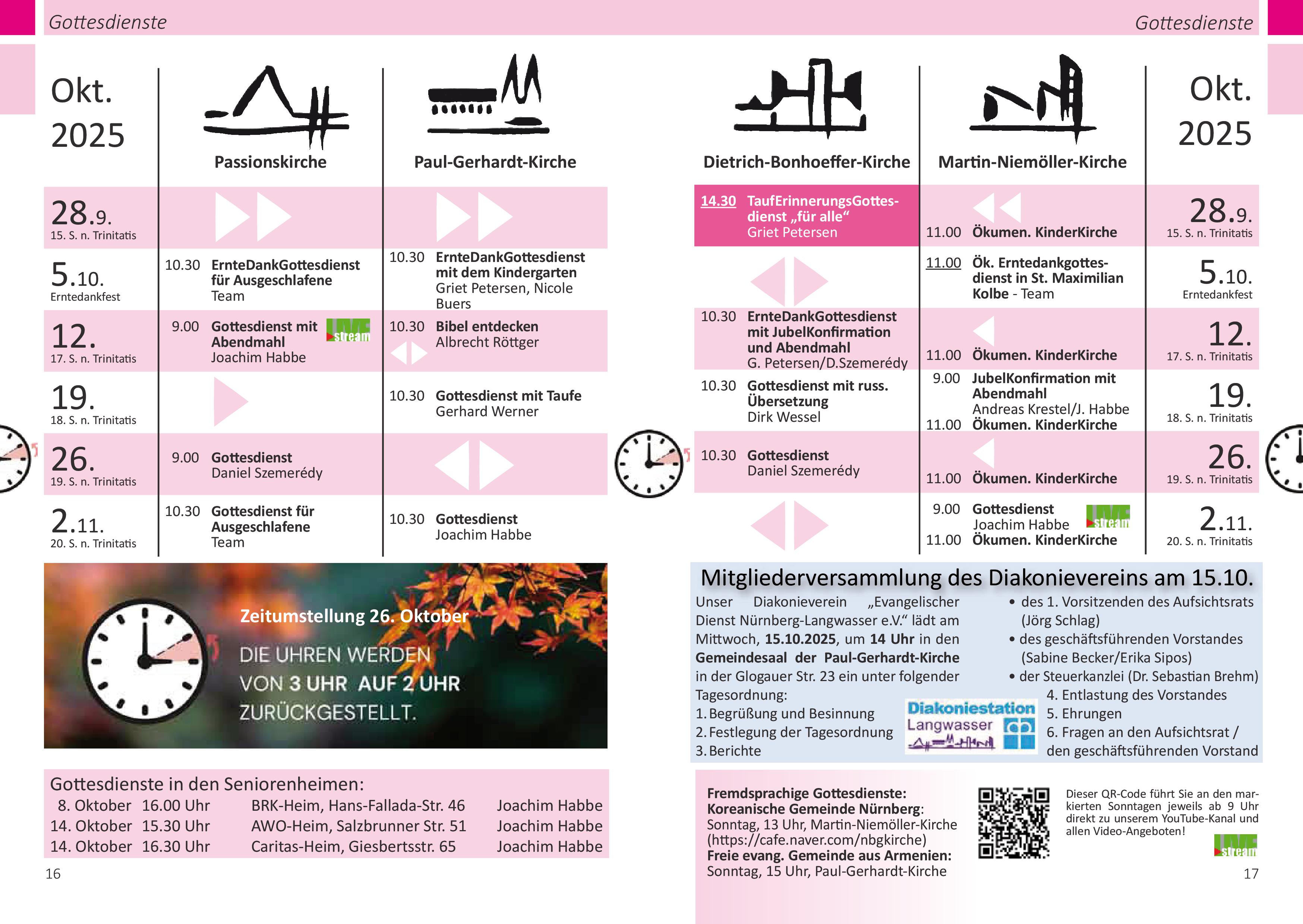 Der Oktober-Gemeindebrief ist da mit allen Infos aus Langwasser! Bitte achten Sie zu Veranstaltungen auf aktuelle Hinweise auf unserer website oder abonnieren Sie unseren Newsletter.