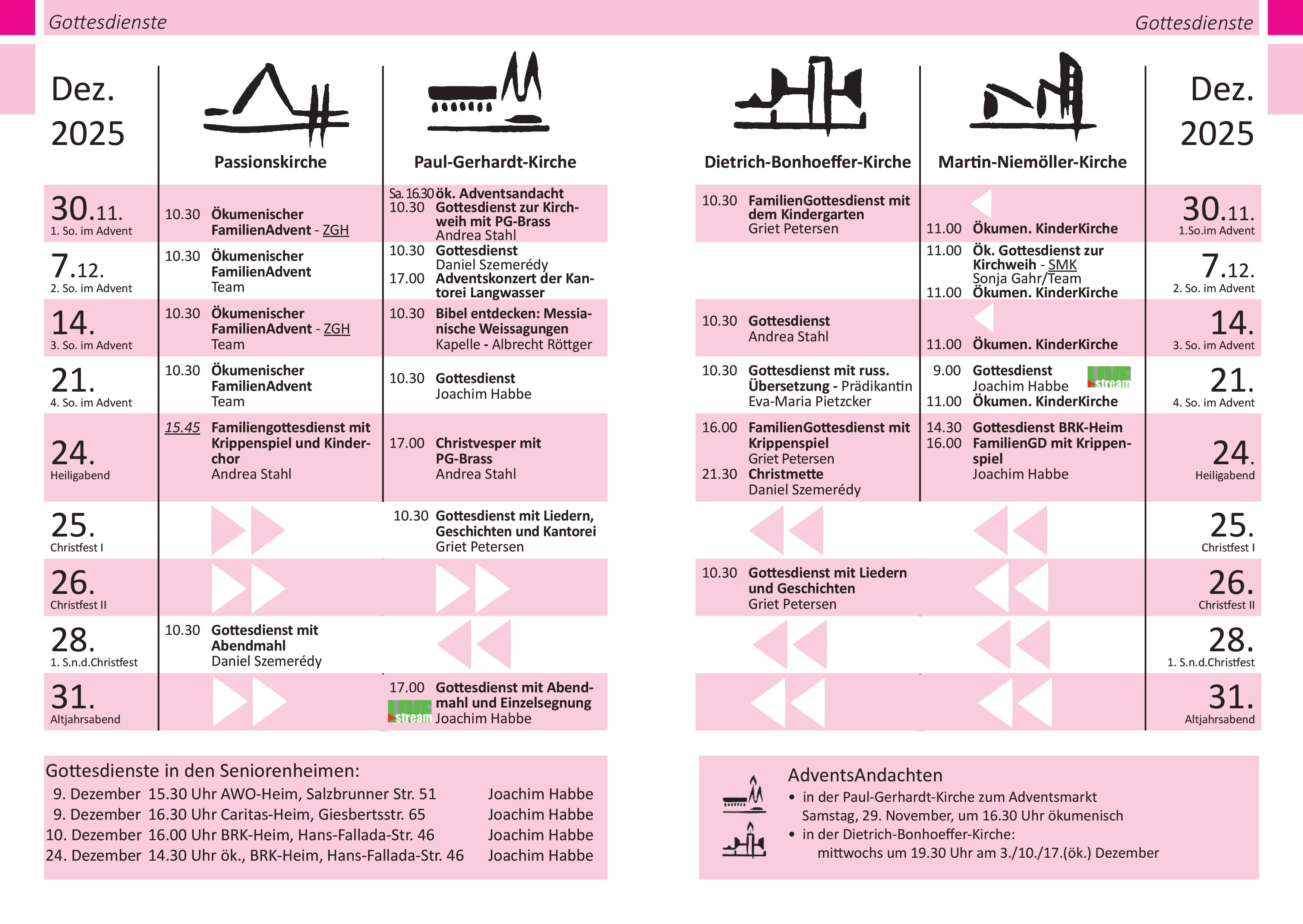 Passionskirche Paul-Gerhardt-Kirche Dietrich-Bonhoeffer-Kirche Martin-Niemöller-Kirche